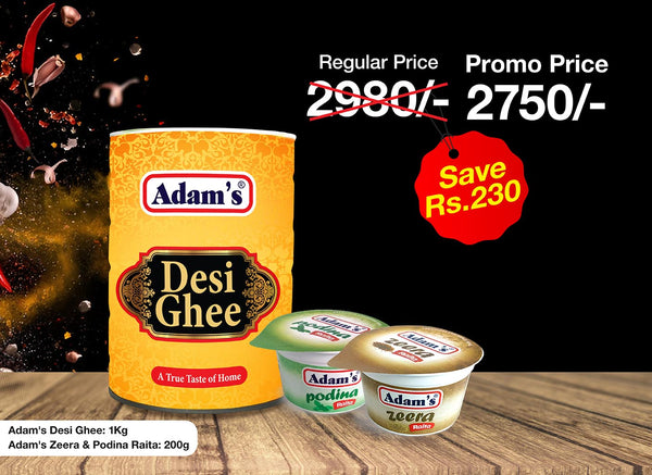 Bringing you the value deal tom make your desi cuisine special. With Adam's Desi Ghee enhancing the taste of your Rawaiti dishes, Adam's Zeera and Podina Raita is the best combination to enjoy your food to the fullest.
